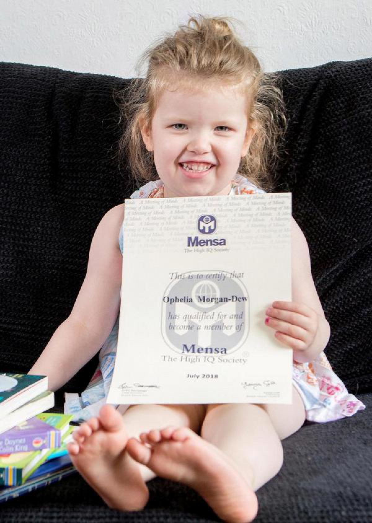 Офелия из небольшого английского городка Росс-он-Уай является вторым самым умным ребенком, который стал членом организации Менса, созданной для людей с высоким коэффициентом интеллекта, сдавших тест лучше, чем 98% населения. Случай девочки уникален, так как процент умников составляет только 0.03%.